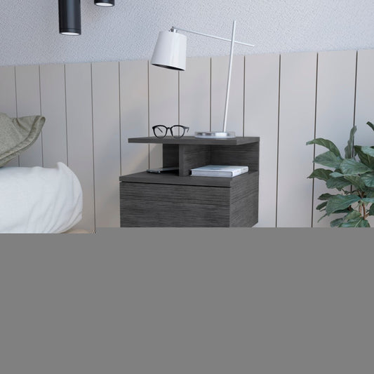 13" Dark Gray Wood One Drawer Floating Nightstand