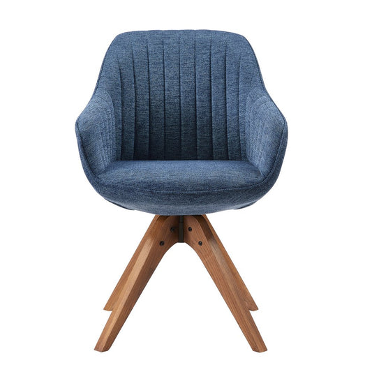 23" Blue Fabric And Natural Swivel Accent Arm Chair
