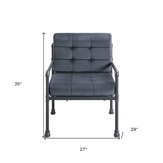 27" Gray and Steel Blue Velvet Arm Chair