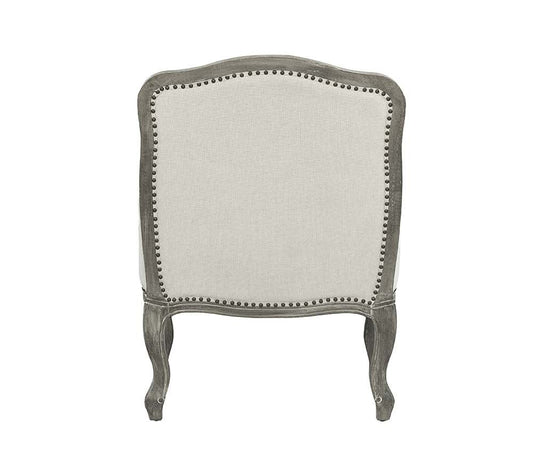 28" Cream and Natural Fabric Distressed Arm Chair