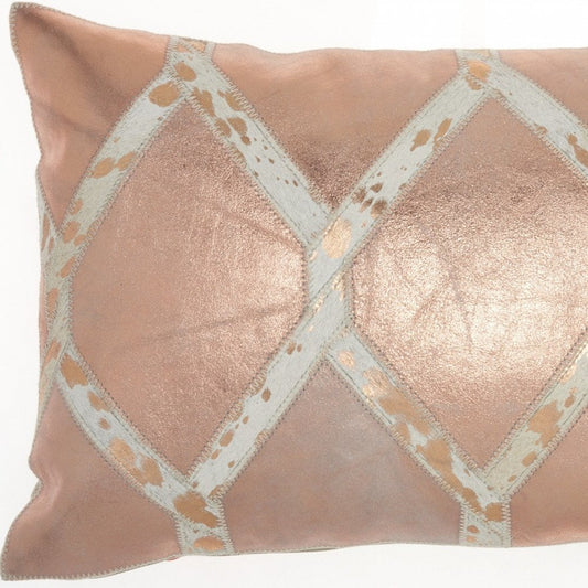 12" X 20" Rose Gold and White Metallic and Cowhide Throw Pillow