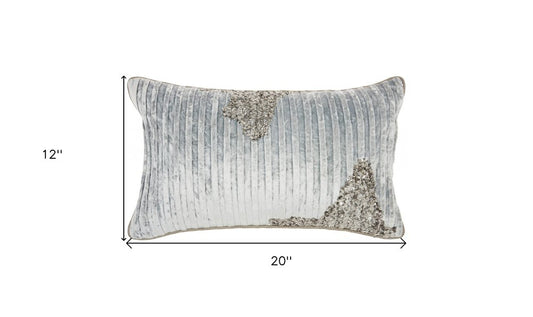 12" X 20" Gray and Silver Striped Cowhide Lumbar Throw Pillow