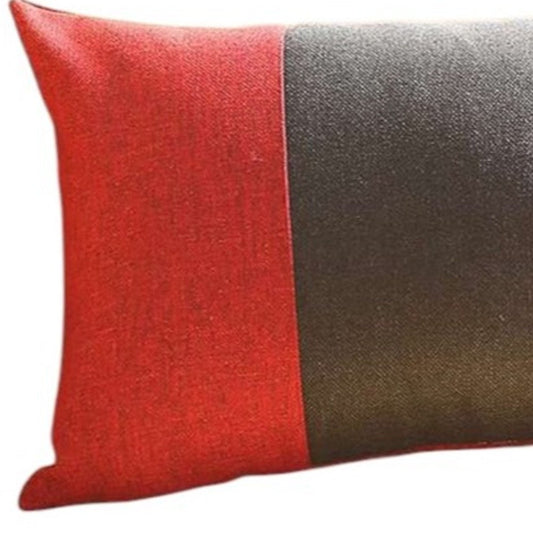 12" X 20" Black And Red Geometric Zippered Handmade Polyester Lumbar Pillow Cover