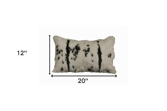 12" X 20" Black And White Rabbit Zippered Natural Fur Animal Print Throw Pillow