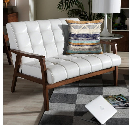 18" Beige and White Weave Cotton Throw Pillow With Pom Poms