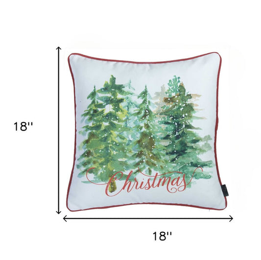 18" Green and White Christmas Tree Throw Pillow Cover