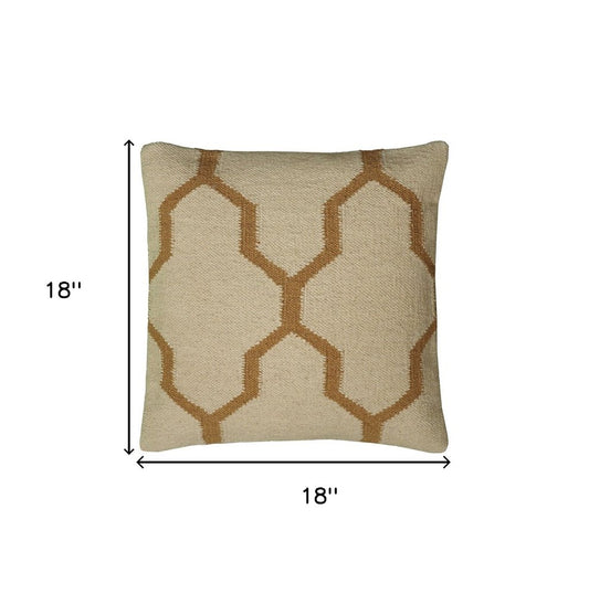 18" Natural And Gold Quatrefoil Cotton Throw Pillow