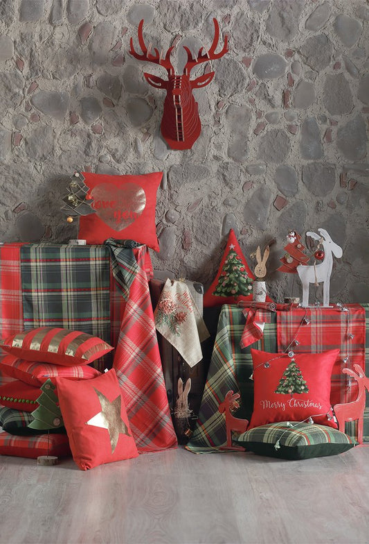 18" Red and White Floral Cotton Throw Pillow With Embroidery, Tassels