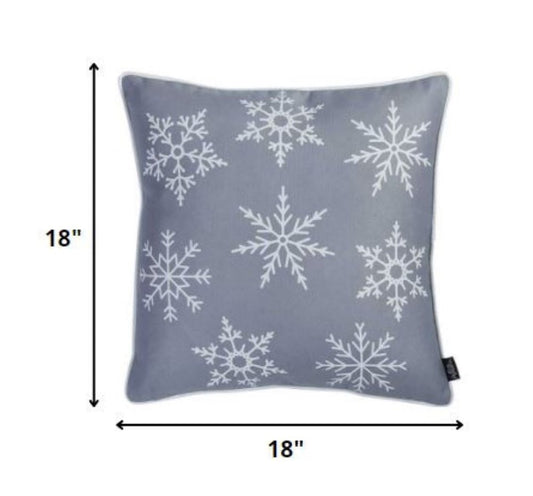 18" Silver Christmas Snowflakes Fabric Throw Pillow Cover