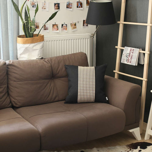 18" X 18" Black And Brown Houndstooth Zippered Handmade Polyester Throw Pillow Cover