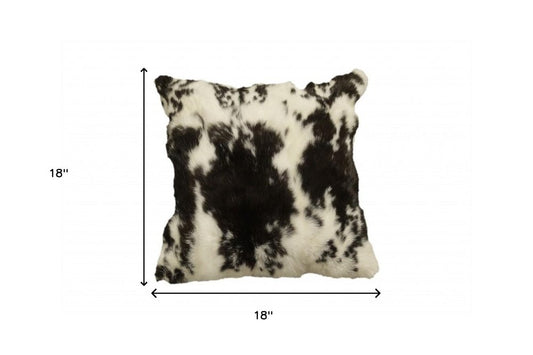 18" X 18" Black And White Rabbit Zippered Natural Fur Animal Print Throw Pillow