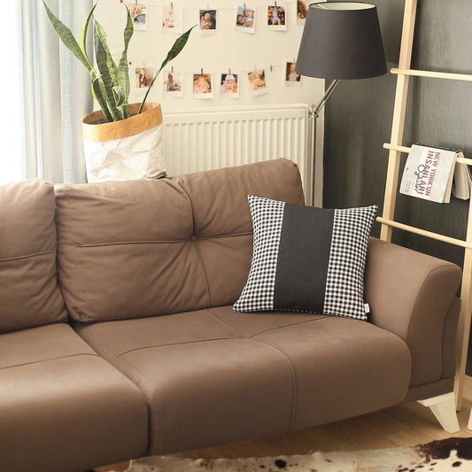 18" X 18" White And Black Houndstooth Zippered Handmade Polyester Throw Pillow Cover