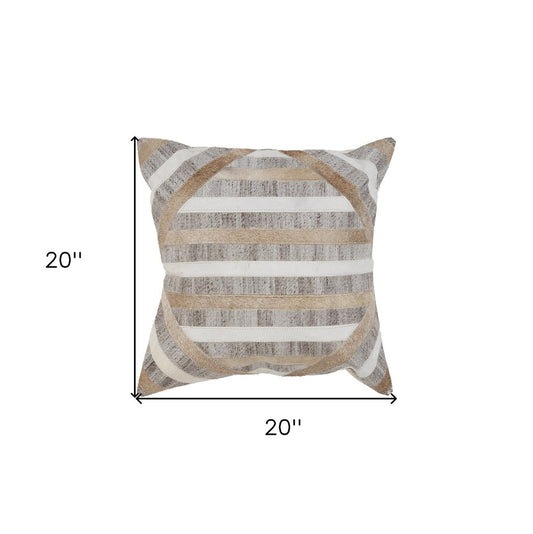 20" Beige and Brown Striped Cowhide Throw Pillow