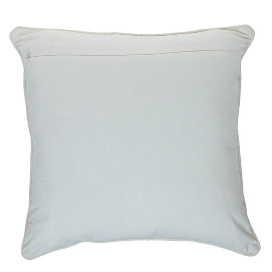 20" Beige and Ivory Throw Pillow with Embroidery and Fringe