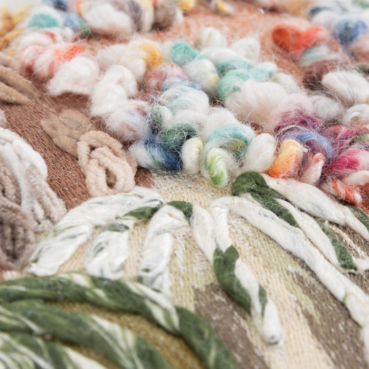 20" Beige and Red Coastal Wool Throw Pillow With Embroidery