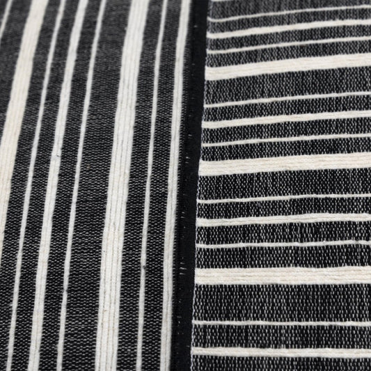 20" Black And Natural Striped Cotton Throw Pillow with Tassels