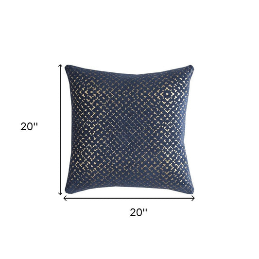 20" Blue and Gold Geometric Cotton Throw Pillow