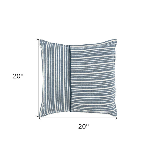 20" Blue And Ivory Cotton Striped Throw Pillow