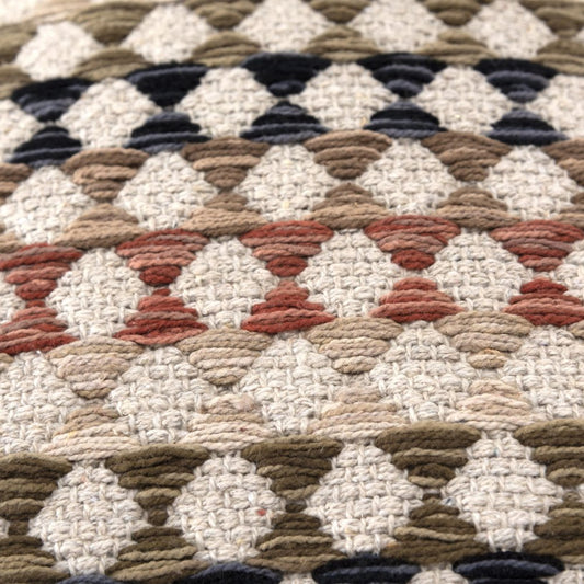 20" Blue and Brown Quatrefoil Wool Throw Pillow With Embroidery