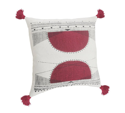 20" Black White And Burgundy Cotton Geometric Throw Pillow with Tassels