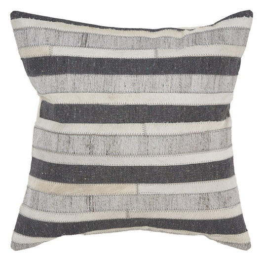 20" Gray and Cream Striped Cotton Throw Pillow