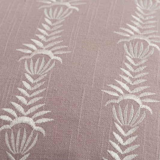 20" Pink and White Cotton Throw Pillow With Embroidery