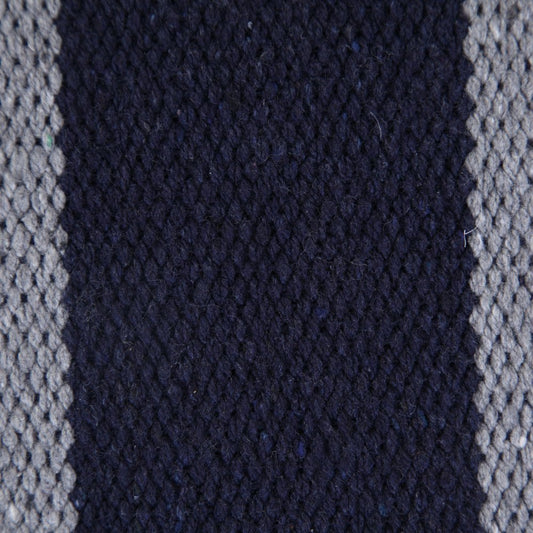 20" Navy Blue And Ivory Cotton Striped Throw Pillow with Fringe