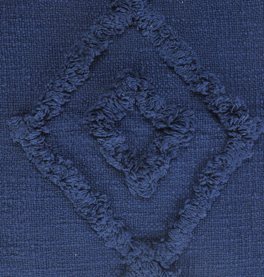 20" Navy Blue Cotton Throw Pillow with Fringe