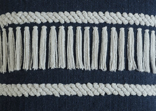 20" X 20" Blue and Off White Braided Cotton Zippered Pillow With Fringe