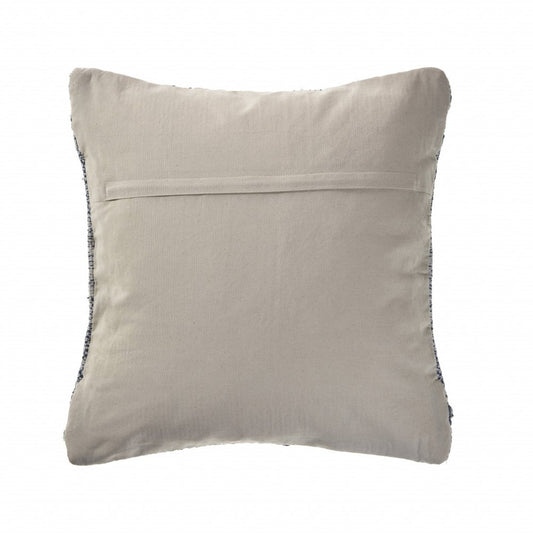 20" X 20" Blue And Cream 100% Cotton Geometric Zippered Pillow