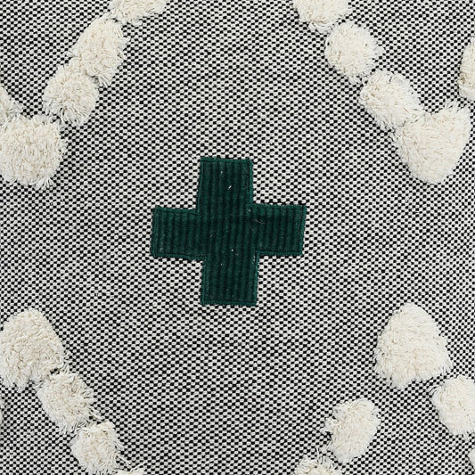 20" X 20" Black Off-White And Green 100% Cotton Geometric Zippered Pillow