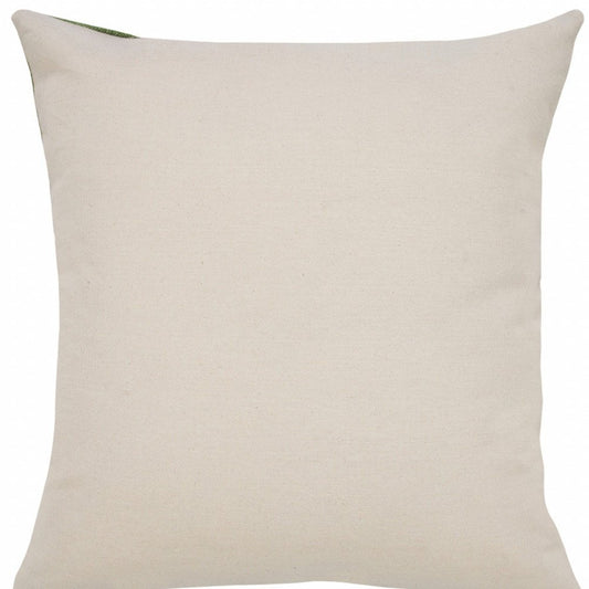20" X 20" Green And Off-White 100% Cotton Abstract Zippered Pillow