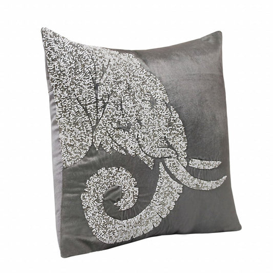 20" X 20" Gray And Silver Elephant Polyester Animal Print Zippered Pillow