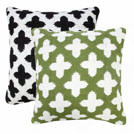 20" X 20" Green And White 100% Cotton Geometric Zippered Pillow