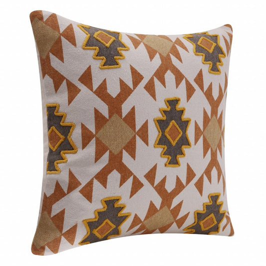 20" X 20" Ivory And Tan 100% Cotton Geometric Zippered Pillow