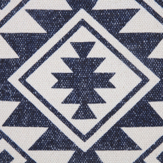 20" X 20" Navy And White 100% Cotton Geometric Zippered Pillow