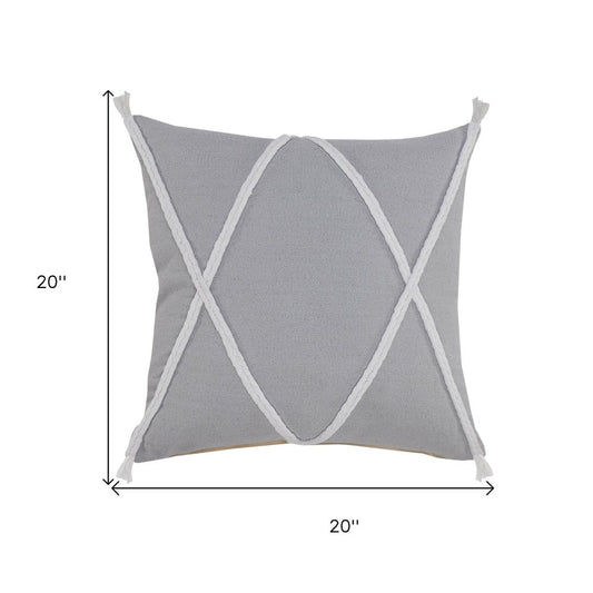 20" X 20" Light Gray Cotton Zippered Pillow