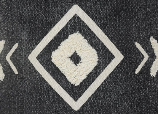 20" X 20" White And Black 100% Cotton Geometric Zippered Pillow