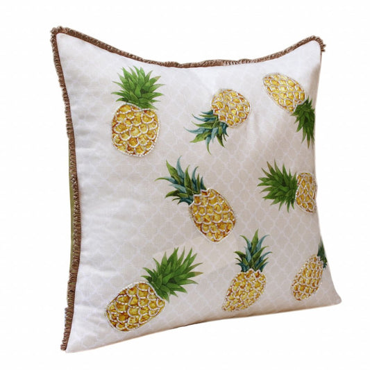 20" X 20" Yellow And Green Polyester Tropical Zippered Pillow