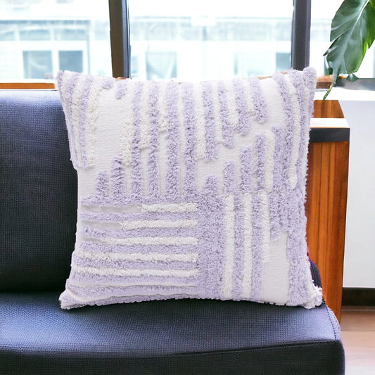 22" White Striped Cotton Throw Pillow