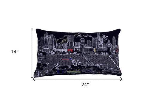 25" Black Austin Nighttime Skyline Lumbar Decorative Pillow
