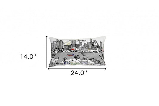 25" White Dallas Daylight Skyline Lumbar Decorative Pillow
