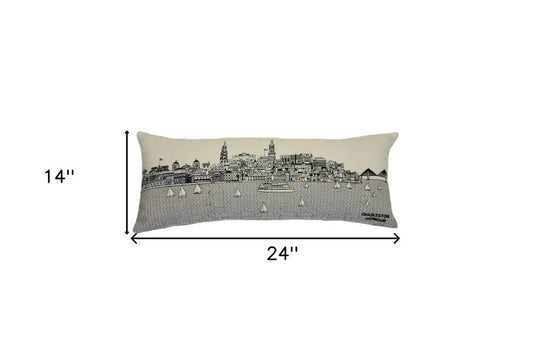 25" White Charleston Daylight Skyline Lumbar Decorative Pillow