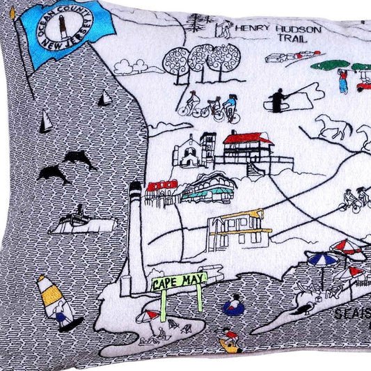 25" Black Jersey Shore Nighttime Skyline Lumbar Decorative Pillow
