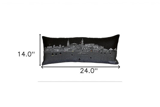 25" Black Charleston Nighttime Skyline Lumbar Decorative Pillow
