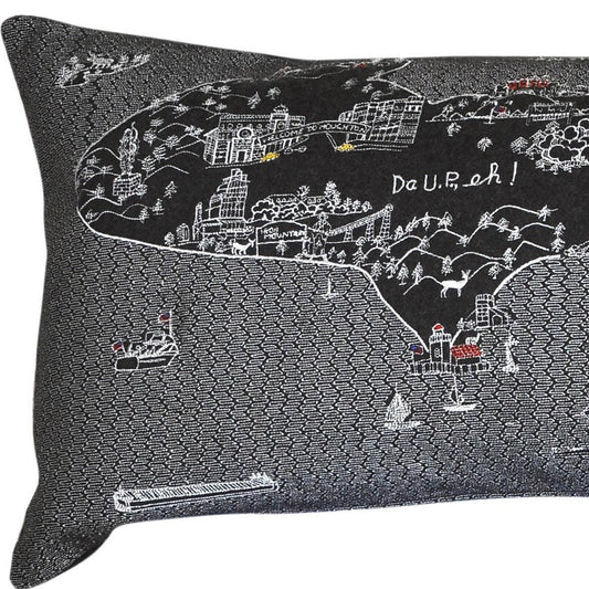46" Black Michigan Nighttime Skyline Lumbar Decorative Pillow