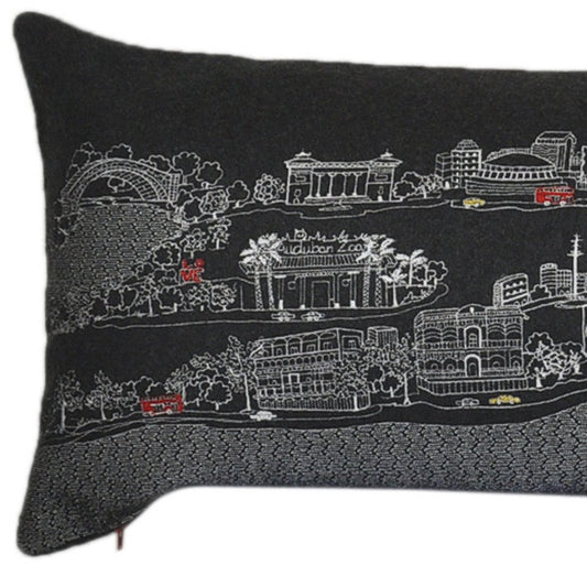 35" Black Charleston Nighttime Skyline Lumbar Decorative Pillow