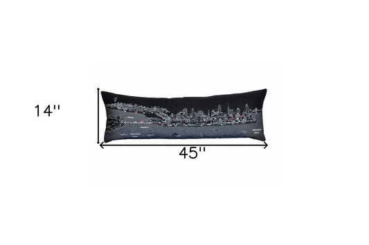 46" Black Philadelphia Nighttime Skyline Lumbar Decorative Pillow