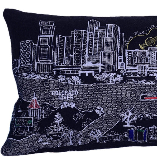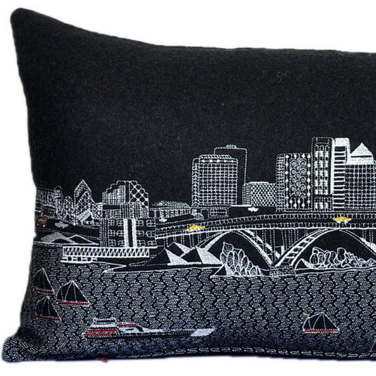 46" Black Nashville Nighttime Skyline Lumbar Decorative Pillow