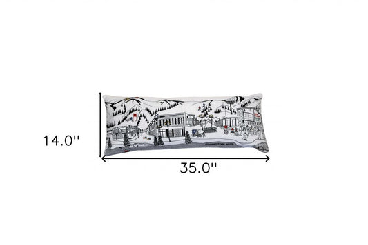 35" White Breckenridge Daylight Skyline Lumbar Decorative Pillow